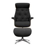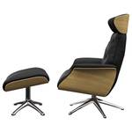Cuir Danbi: Noir - Hauteur : 118 cm - Chrome brillant - Avec repose-pieds - Chêne