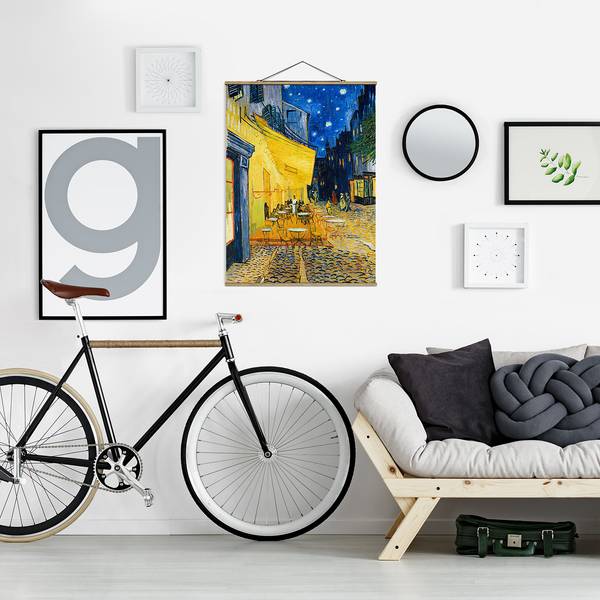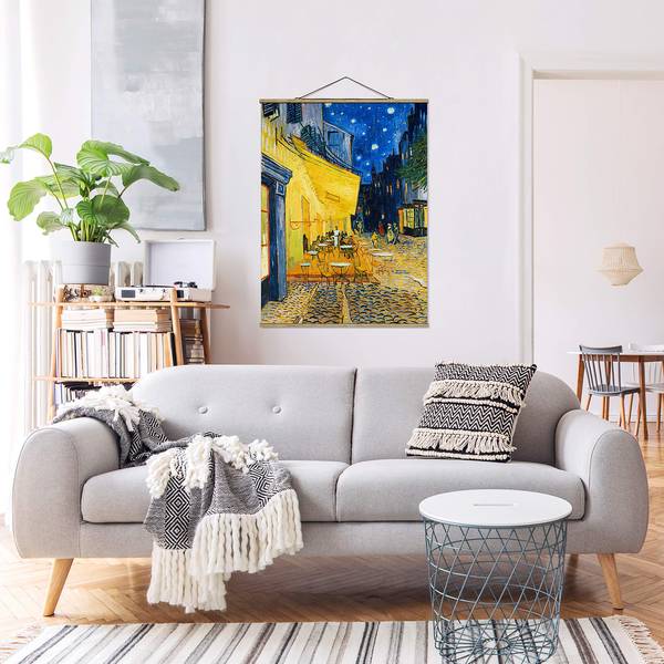 textiel & massief hout (houtsoort) - geel; blauw - 50cm x 66,4cm x 0,3cm - 50 x 66 cm