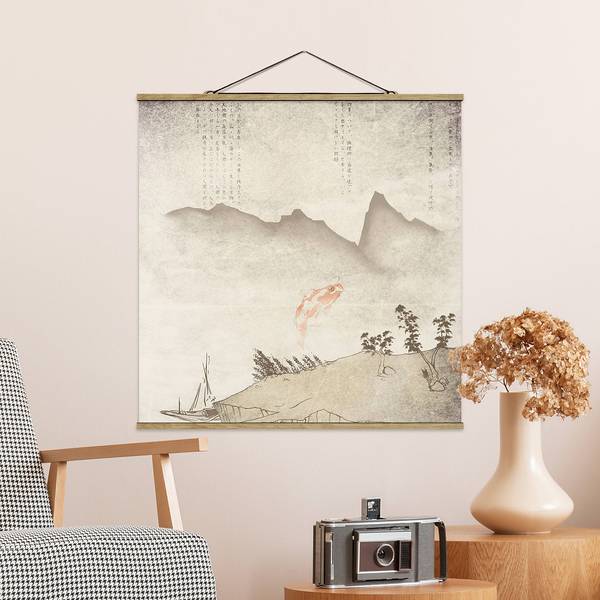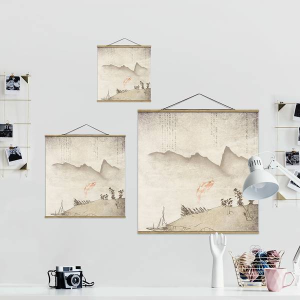 textiel & massief hout (houtsoort) - Beige - 50cm x 50cm x 0,3cm - 50 x 50 cm