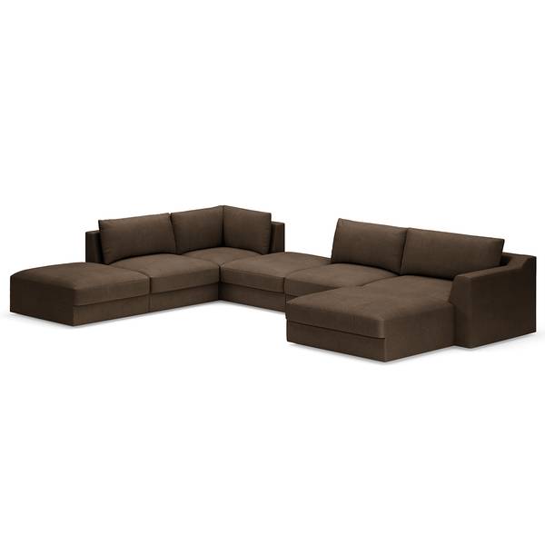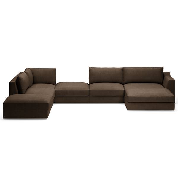 geweven stof Palila: espresso - chaise longue vooraanzicht rechts/ottomane links
