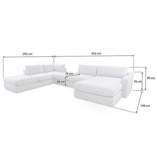 - Oriëntatie: chaise longue vooraanzicht rechts/ottomane links